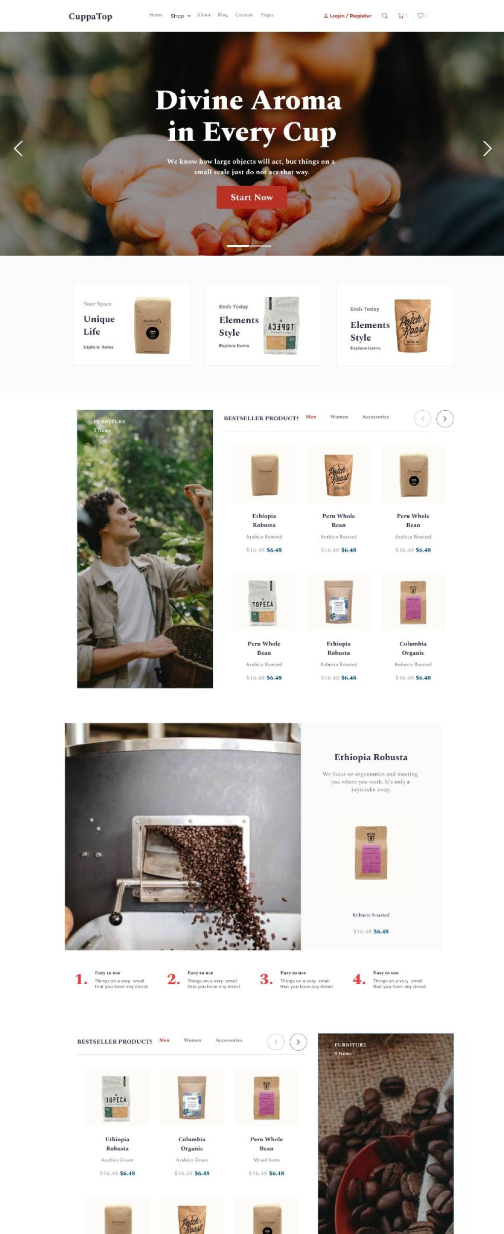 Coffee Websites: Design coffee sites with product and accessory displays.